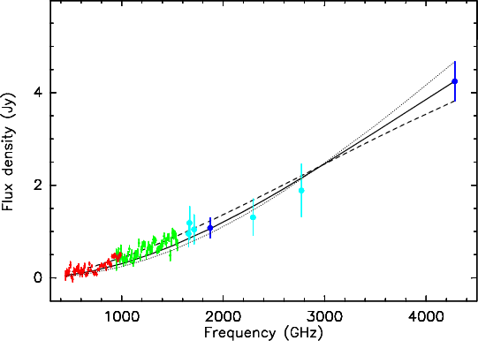 +0.3-1.3 m2 kg-1 at 450 GHz, and dust