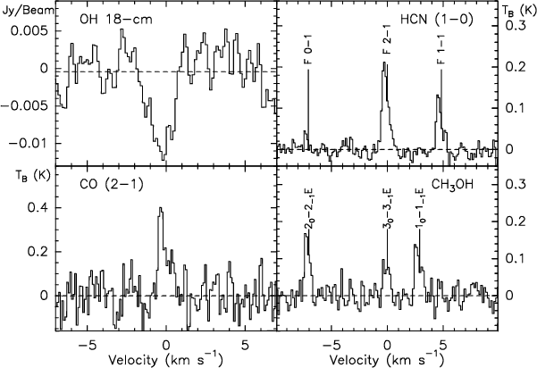 HCN, H2S, OH) measured with the IRAM 30-m and Nançay
