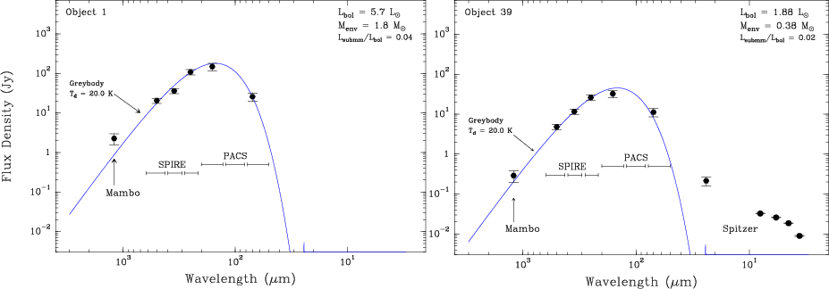m Spitzer and the 1.2 mm MAMBO data to the 5 Herschel bands.