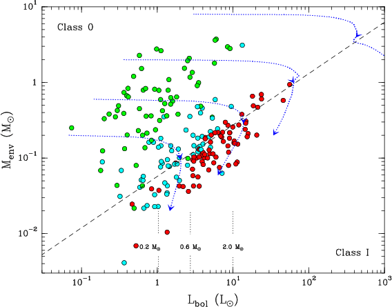 higher than 0.03 which could be safely recognized as Class 0 objects, from YSOs with