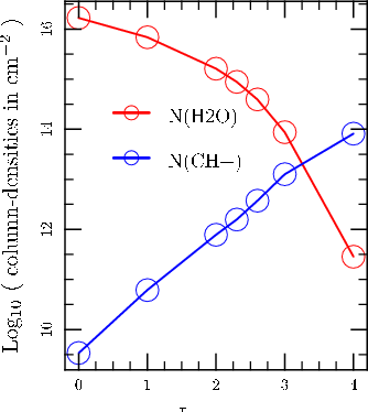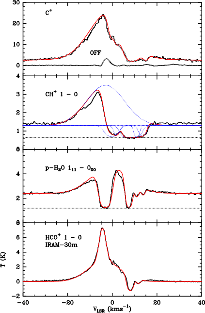 in ISRF units (Ossenkopf et al. 2010) for the material closest to the HII region, we keep this value as a free parameter. Figure 3 displays the total column densities of CH+ and H2O