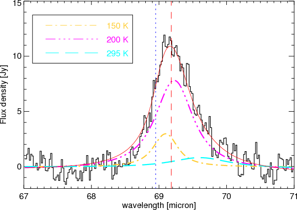 Our focus here is on the newly detected CO lines. In Fig. 5 we show the rotational diagram of the CO lines. Although a single-temperature