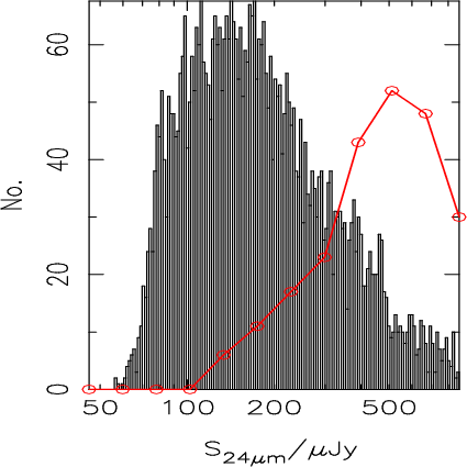 Figure 5 shows the metals produced as a function of redshift on the assumption that the redshift distributions of GOODS-North and LH-North are representative of the FIRB as a whole. The figure suggests that most of the metals (and therefore most of the massive stars) formed at a moderate redshift (