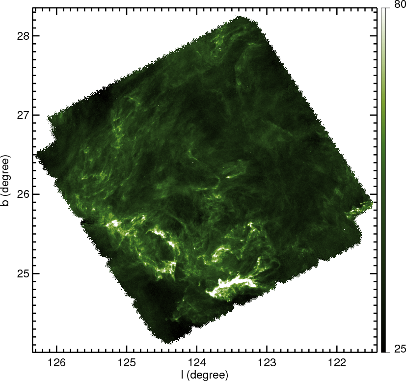 m SPIRE map, covering 10 square degrees of the brightest part of the Polaris flare,