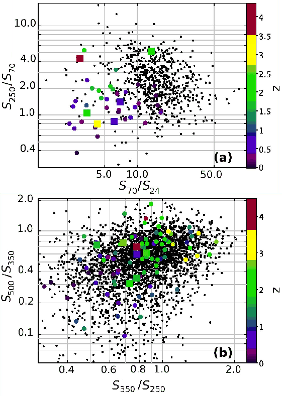Their combined Spitzer-MIPS and Herschel-SPIRE colours (specifically