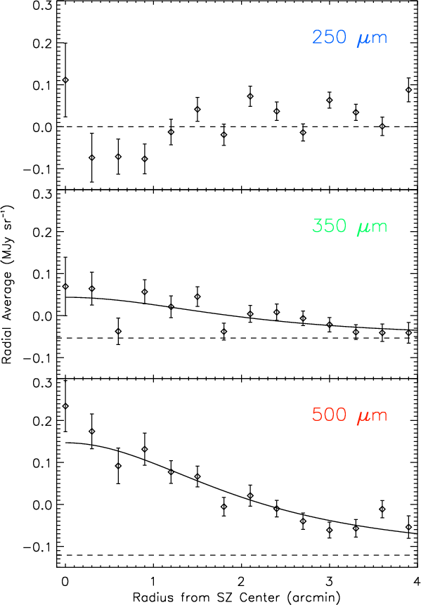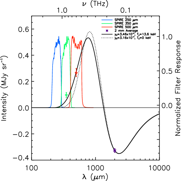 longest wavelengths. The measured SZ effect increment central