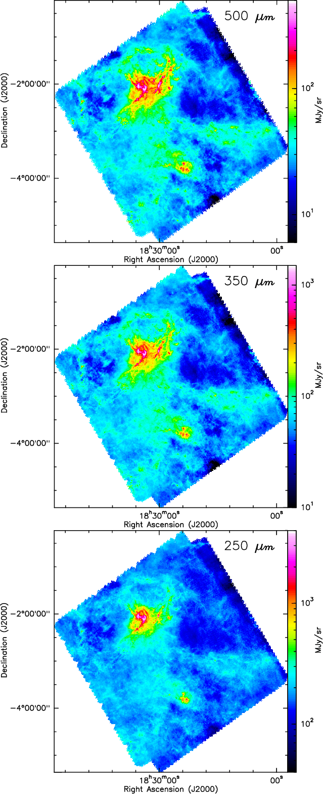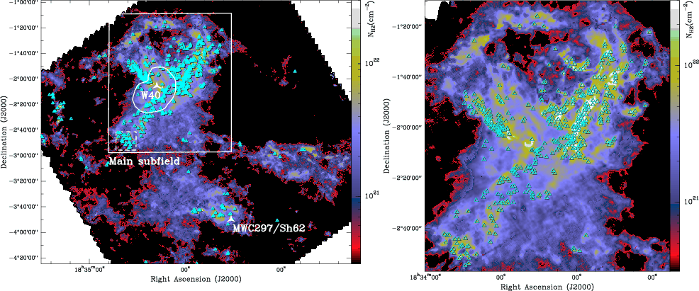 a) Column density map of the Aquila entire field derived from Herschel data.