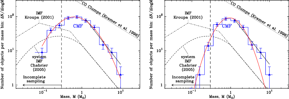 Figure 2a shows the mass distribution (CMF) of the 452 starless cores identified in the Aquila main subfield.