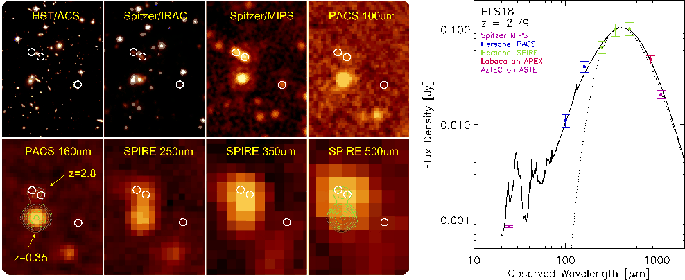 SED template fits to HLS1-HLS9. The data points have been de-magnified