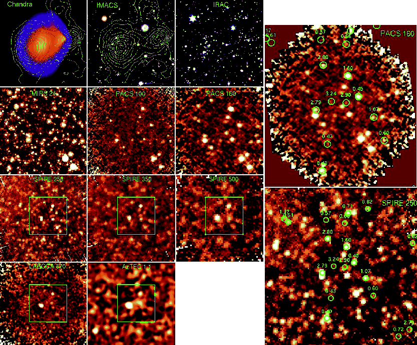field galaxies behind these two galaxy concentrations (Rex et al. 2010; Rawle et al. 2010). This is shown in Fig. 2, which compares the