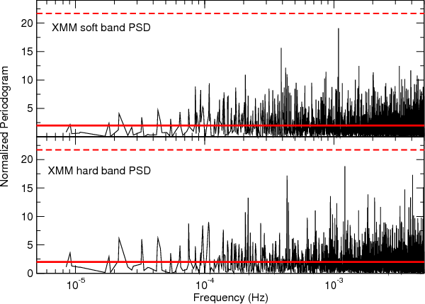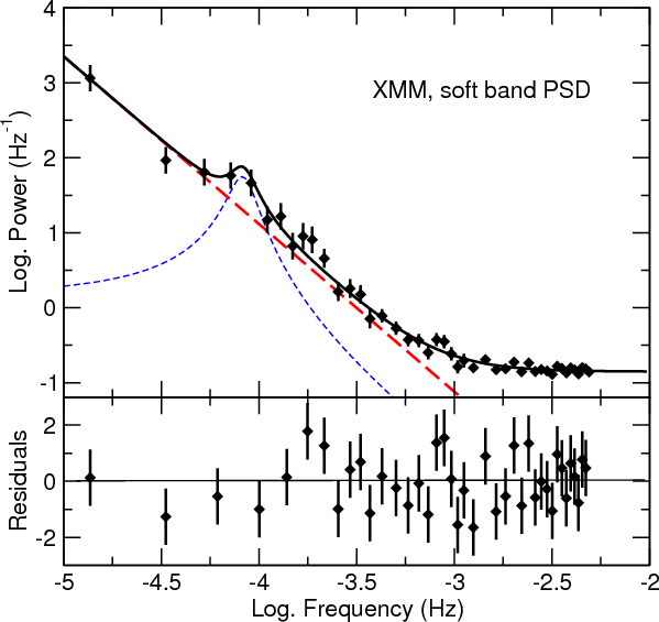 quasi-periodic signals. The soft band power spectral slope is steeper