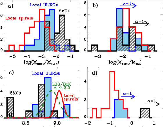 Indeed, for those SMGs whose gas mass is measured, we infer dust-to-gas
