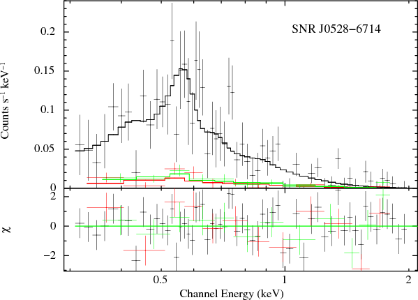 The spectrum of SNR J0528-6714 is characterised by a high absorption and a low temperature. Considering its large extent and low surface brightness, it is most likely an older remnant. The low temperature is similar to 3 SMC SNRs (van der Heyden et al. 2004; Filipovic et al. 2008), and cooler than any known bright LMC SNR (Williams et al. 2004; Bamba et al. 2006; Williams & Chu 2005; Borkowski et al. 2006).