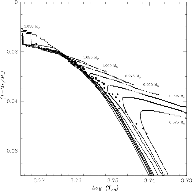 or age, a small percentage difference in stellar mass, and consequently in the depth (in mass) of the stellar