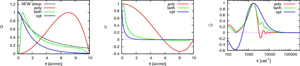 Different filter profiles have been proposed in the literature depending on their specific application in weak lensing. We adopt three of them here which have been used so far to identify halo candidates through weak lensing.