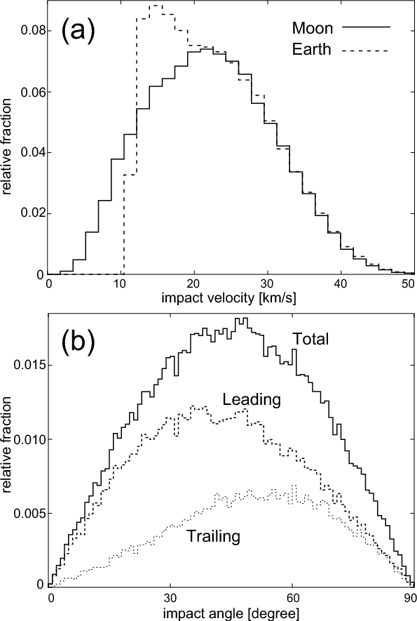 - Overall, the impact angles are isotropically distributed, but there is a noticeable deficit of oblique impacts on the trailing hemisphere of the Moon.