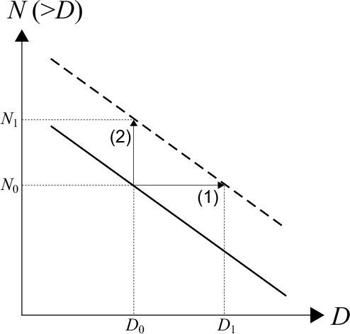 - Note that at this stage of our calculation we do not consider at all the size-frequency distribution (or absolute magnitude distribution) of the particles.