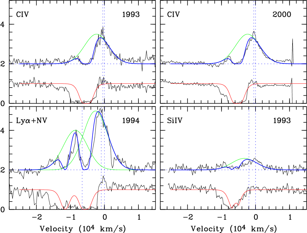 Despite many high-quality observational studies, in particular from spectropolarimetry (Ogle et al. 1999), no clear view of the geometry and kinematics of the BAL phenomenon has emerged yet. While pure spherically symmetric winds appeared too simple to account for the variety of observations (Hamann et al. 1993; Ogle et al. 1999), equatorial disks, rotating winds, polar flows, or combinations thereof have been proposed more or less successfully to interpret the observations of individual objects or small groups of them (e.g. Murray et al. 1995; Schmidt & Hines 1999; Lamy & Hutsemékers 2004; Zhou et al. 2006). Given the large parameter space characterizing non spherically symmetric winds, BAL profile modeling must then be combined with other techniques to determine the outflow properties in individual objects (e.g. Young et al. 2007).