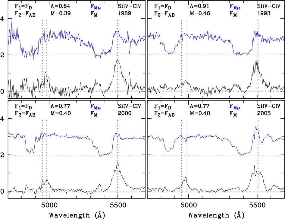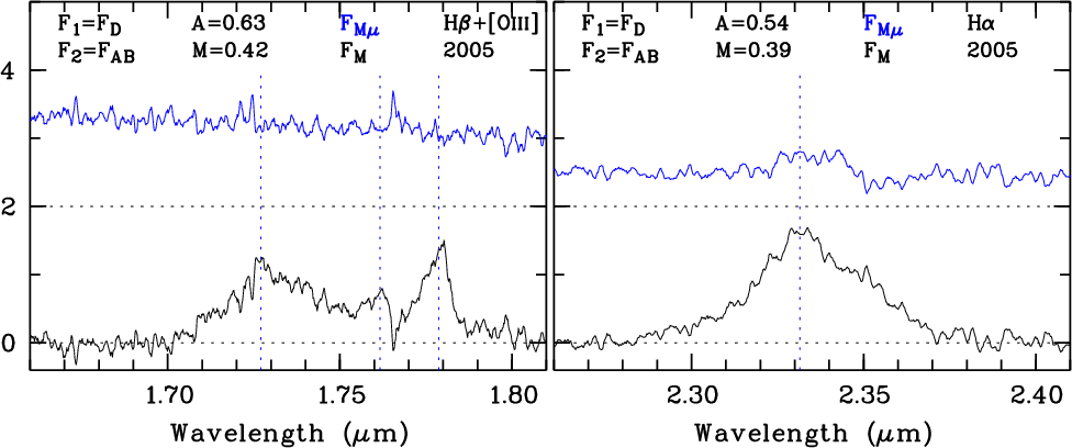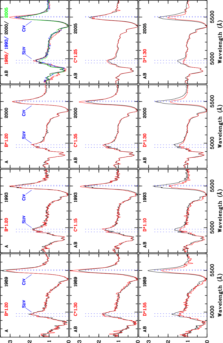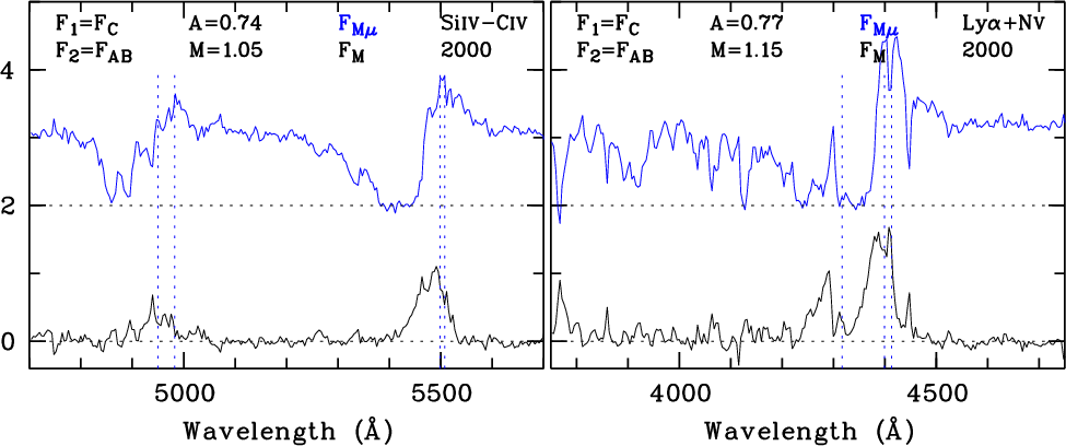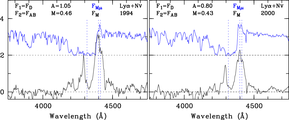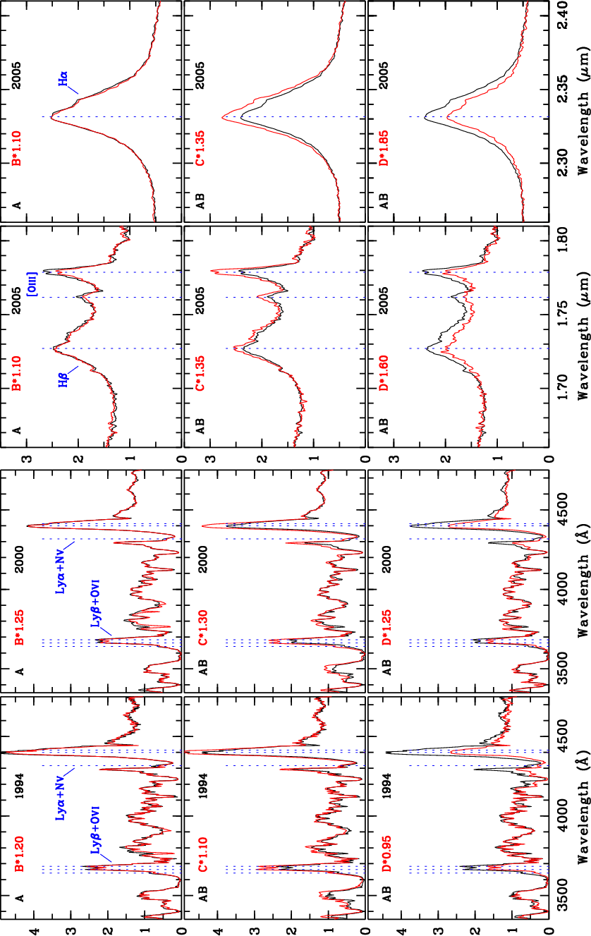 blue/red symmetry of the emission lines. H1413+117 is also a