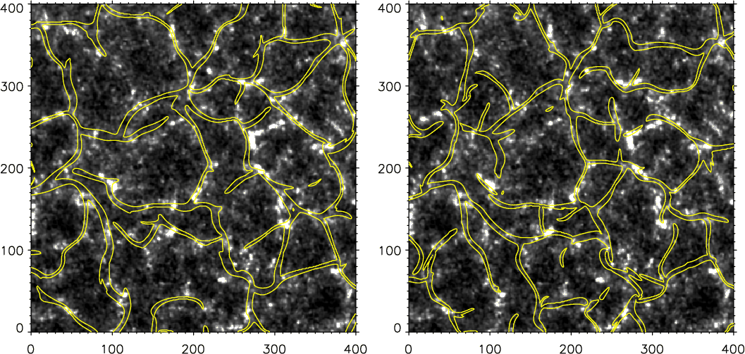 By comparing the quiet-Sun images obtained by TRACE (transition region and coronal explorer, Handy et al. 1999) in its three ultraviolet (UV) passbands (centered at 1700 Å, 1600 Å, and 1550 Å) and a co-temporal Ca II K filtergram, Rutten et al. (1999a) found a high degree of spatial agreement between the Ca II K image and the TRACE images, in particular the 1700 Å one. They concluded that the three TRACE channels portray internetwork grain phenomena as well as Ca II K filtergrams do. Therefore, TRACE image sequences provide an excellent means to study the dynamics of internetwork grains (Rutten et al. 1999a).