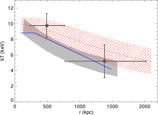 (blue, solid boundaries) with X-ray spectral measurements from Chandra
