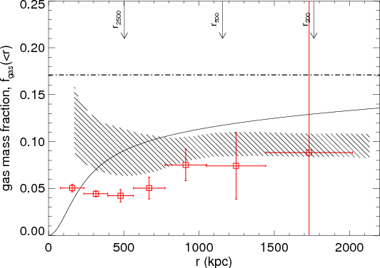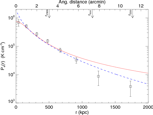 fit values from SZE and X-ray measurements. Extrapolation of the