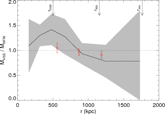 under the assumption of hydrostatic equilibrium. For comparison with