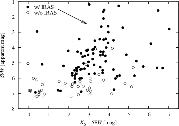 the Infrared Camera (IRC) on board AKARI. We combined the 2MASS PSC and