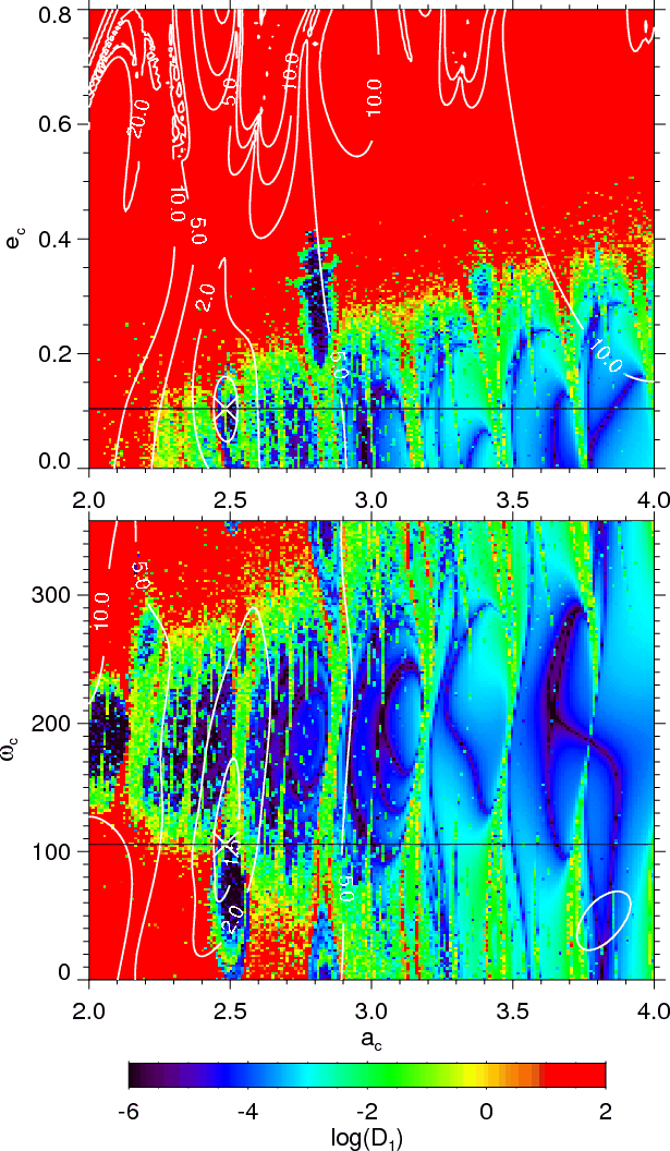 the two planets. Using frequency analysis (Laskar 1993,1990,1999),