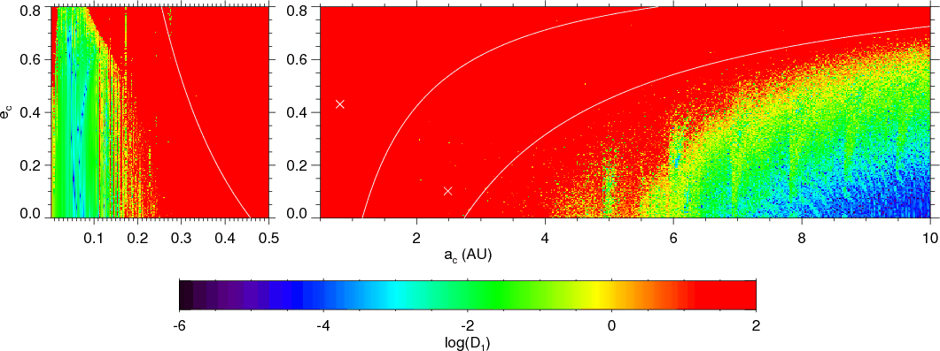 possible between 0.12 AU and 6.5 AU as they would be