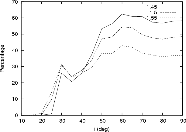 stable orbits) are limited with respect to inclinations to the line of sight between