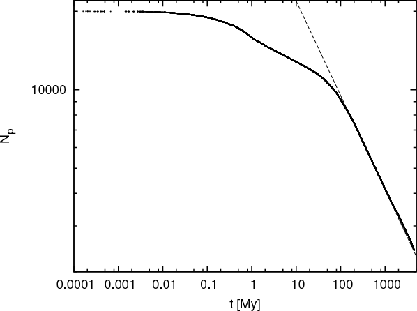 In the first simulation, we integrated 20 000 initial