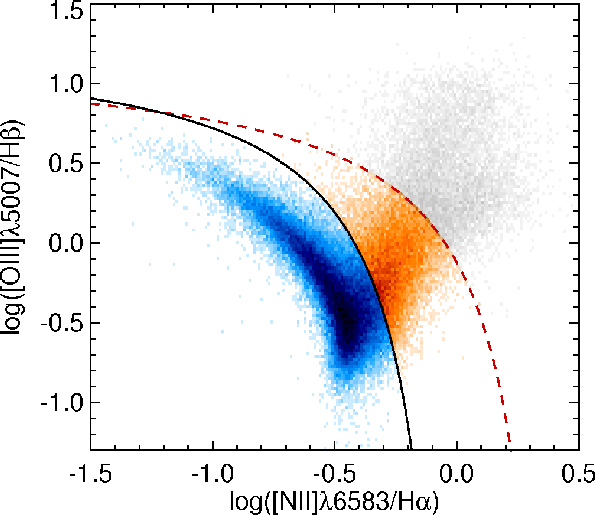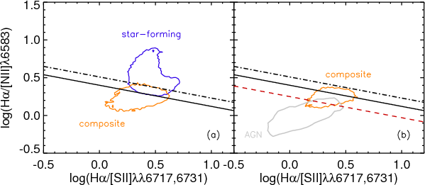 diagram for classifying star-forming, composite, and AGNs galaxies. We