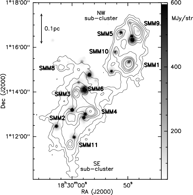Table 1: Submillimetre sources in Serpens Main Cluster.