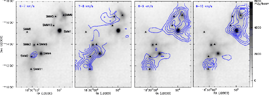 occurring in three clusters covering approximately 1.5 deg2(Enoch et al. 2007). The most active region is the Serpens main