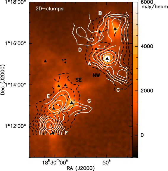 to the northwest (NW) and one to the southeast (SE). These submillimetre