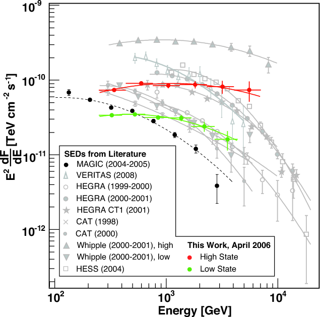 - Horan, D., Acciari, V. A., Bradbury, S. M., et al. (Whipple Collab.) 2009, ApJ, 695, 596 [Google Scholar]