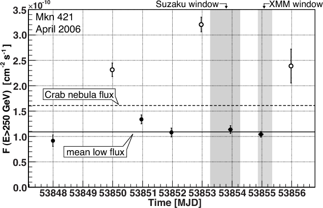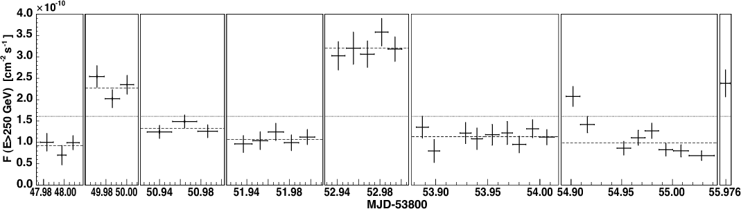 Mkn 421 on all observation nights. The flux (E>250 GeV)