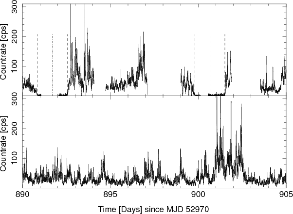 This work was supported by the Bundesministerium für Wirtschaft und Technologie through DLR grant 50 OR 0808 and via a DAAD fellowship. This work has been partially funded by the European Commission under the 7th Framework Program under contract ITN 215212. F.F. thanks the colleagues at UCSD and GSFC for their hospitality. We thank M. A. Nowak and A. Pollock for the useful discussions. For this work we used the ISIS software package provided by MIT. We especially like to thank J. C. Houck and J. E. Davis for their restless work to improve ISIS and S-Lang. This research has made use of NASA's Astrophysics Data System. This work is based on observations with INTEGRAL, an ESA project with instruments and science data centre funded by ESA member states (especially the PI countries: Denmark, France, Germany, Italy, Switzerland, Spain), Czech Republic and Poland, and with the participation of Russia and the USA. We used the archival data from the ASM Light Curve web page, developed by the ASM team at the Kavli Institute for Astrophysics and Space Research at the Massachusetts Institute of Technology. We thank the anonymous referee for her/his useful comments.