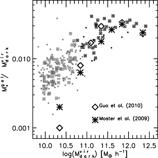 (e.g. Dutton & van den Bosch 2009; Guo et al. 2010; Nagashima et al. 2005; Kang et al. 2005) and some hydrodynamical simulations