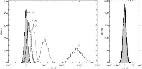 Figure 10: Same as Fig. 9. Here the noise estimate accounts for CR spikes, assuming that their distribution is known a-priori. As a result, the spectrum is not biased. |