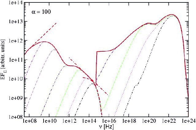 are attributed to synchrotronradiation and SSC radiation of relativistic