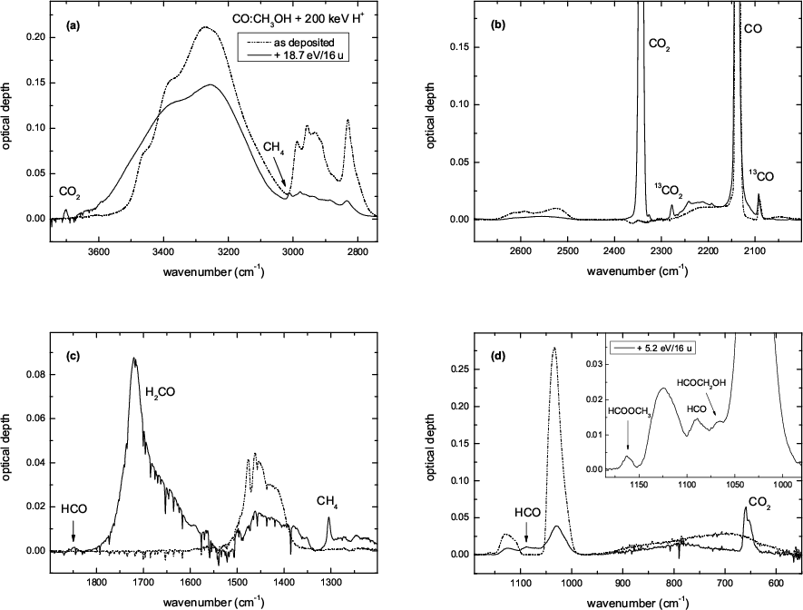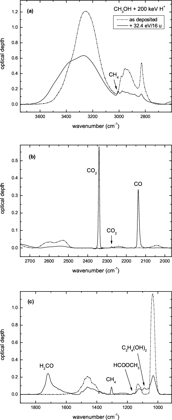 irradiated at 16 K with 200 keV protons. Methyl formate was