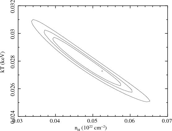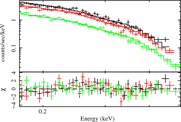 A black body or a thermal plasma model (Mekal in XSPEC) provide the best fits, with temperatures