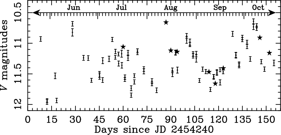 AcknowledgementsWe are grateful to M. Fernández, M. Osorio and G. Anglada for very helpful discussions. This research was partially supported by Spanish grants AYA2005-07808-C03-01, PCI2005-A7-0180, AYA2008-06202-C03-01, P07-FQM-02998 and European FEDER funds. B.E.K.S. was supported, in part, by HST grant GO-10607. We acknowledge with thanks the variable star observations from the AAVSO International Database contributed by observers worldwide and used in this research. We also acknowledge the use of ASAS database. R.D. acknowledges financial support from the MICINN (contract Ramón y Cajal). We also acknowledge the fruitful comments from the anonymous referee.