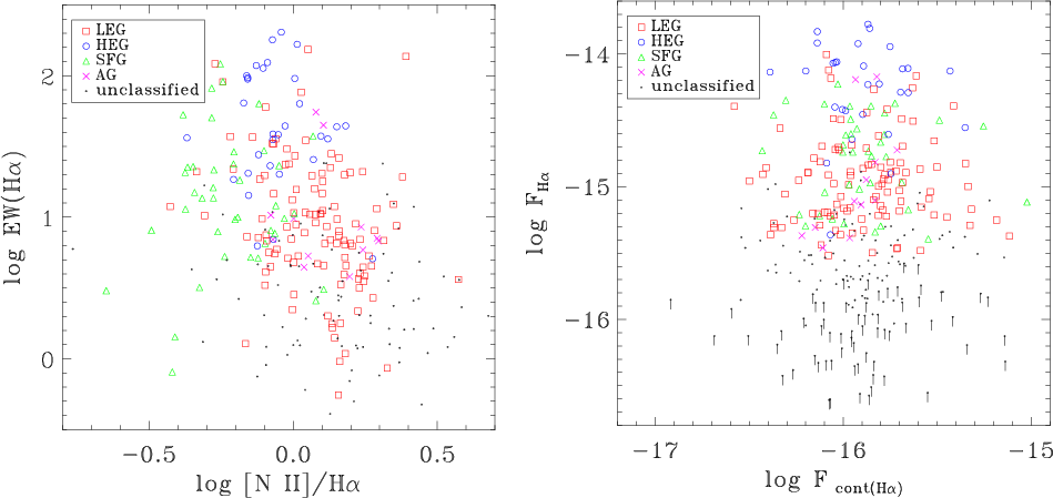 - All these objects only show narrow emission lines. Indeed Best et al. (2005b) excluded the objects classified as QSO (that instead generally do show broad lines) by the automated SDSS classification pipeline, because a bright nucleus would have prevented a detailed study of the host properties.