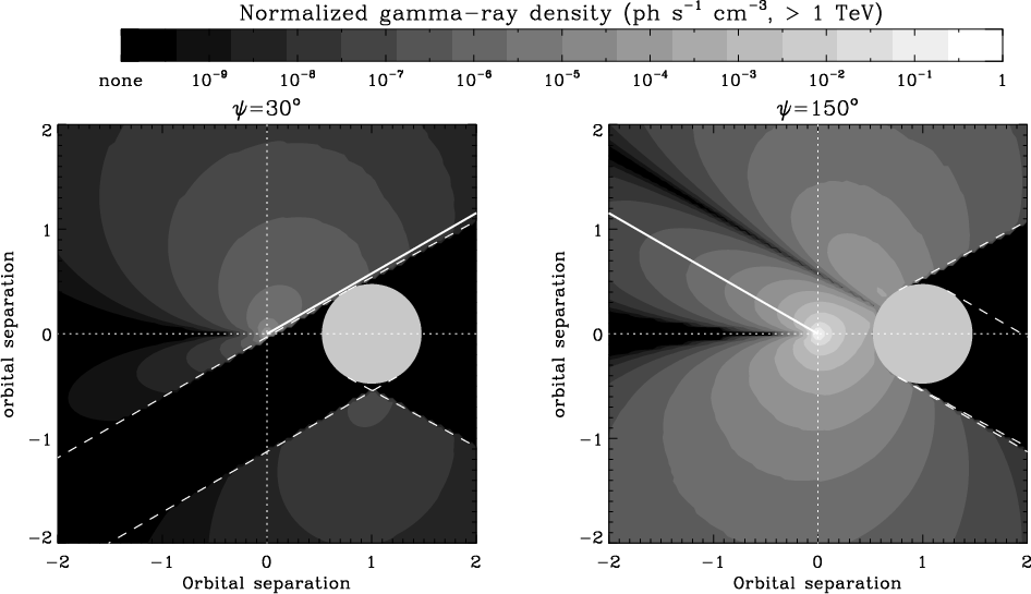 pairs in gamma-ray binaries. In their model, the density of secondary