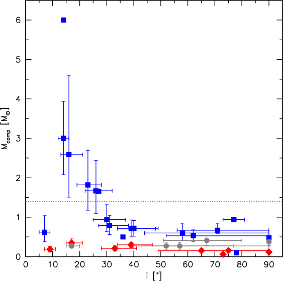 - The upper limit to the companion mass of PG 1116+301 is identical with the most likely companion mass (see Table 4, Fig. 14). The system can only be synchronised if the inclination reaches its maximum value of