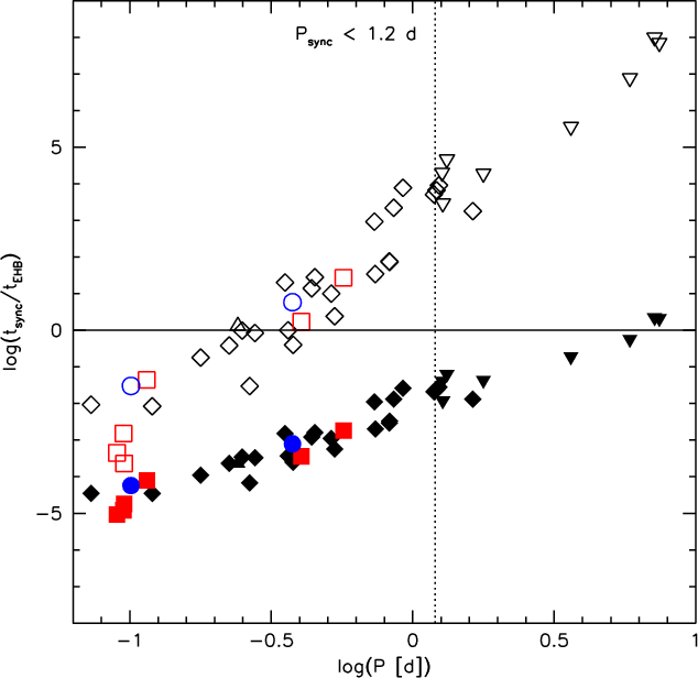 cases. We found orbital synchronisation most likely to be established in binaries with orbital