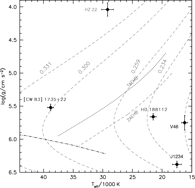 very thin hydrogen envelopes and masses of about half a solar mass (Heber 1986)